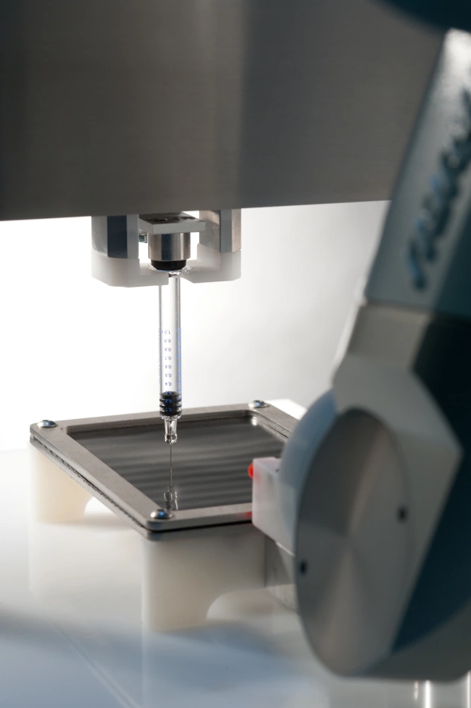 - Relevé du décollement du joint de piston et de l’effort en fond de seringue